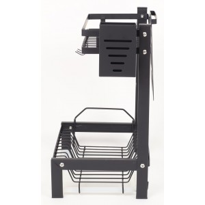 přídavný držák nože, nádoba na příbory, držák prkénka, háčky.