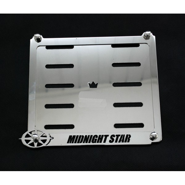 Ozdobný rámek SPZ je vyroben z leštěné, nerezové oceli. Součástí rámku je ocelová podložka pod značku a čtyři nerezové šrouby.