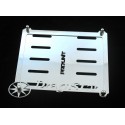 Ozdobný rámek SPZ je vyroben z leštěné, nerezové oceli. Součástí rámku je ocelová podložka pod značku a čtyři nerezové šrouby.