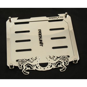 Ozdobný rámek SPZ je vyroben z leštěné, nerezové oceli. Součástí rámku je ocelová podložka pod značku a čtyři nerezové šrouby.